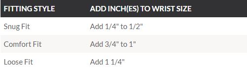 STEP 3: To find your bracelet size, just add your wrist size with the appropriate measurements below.